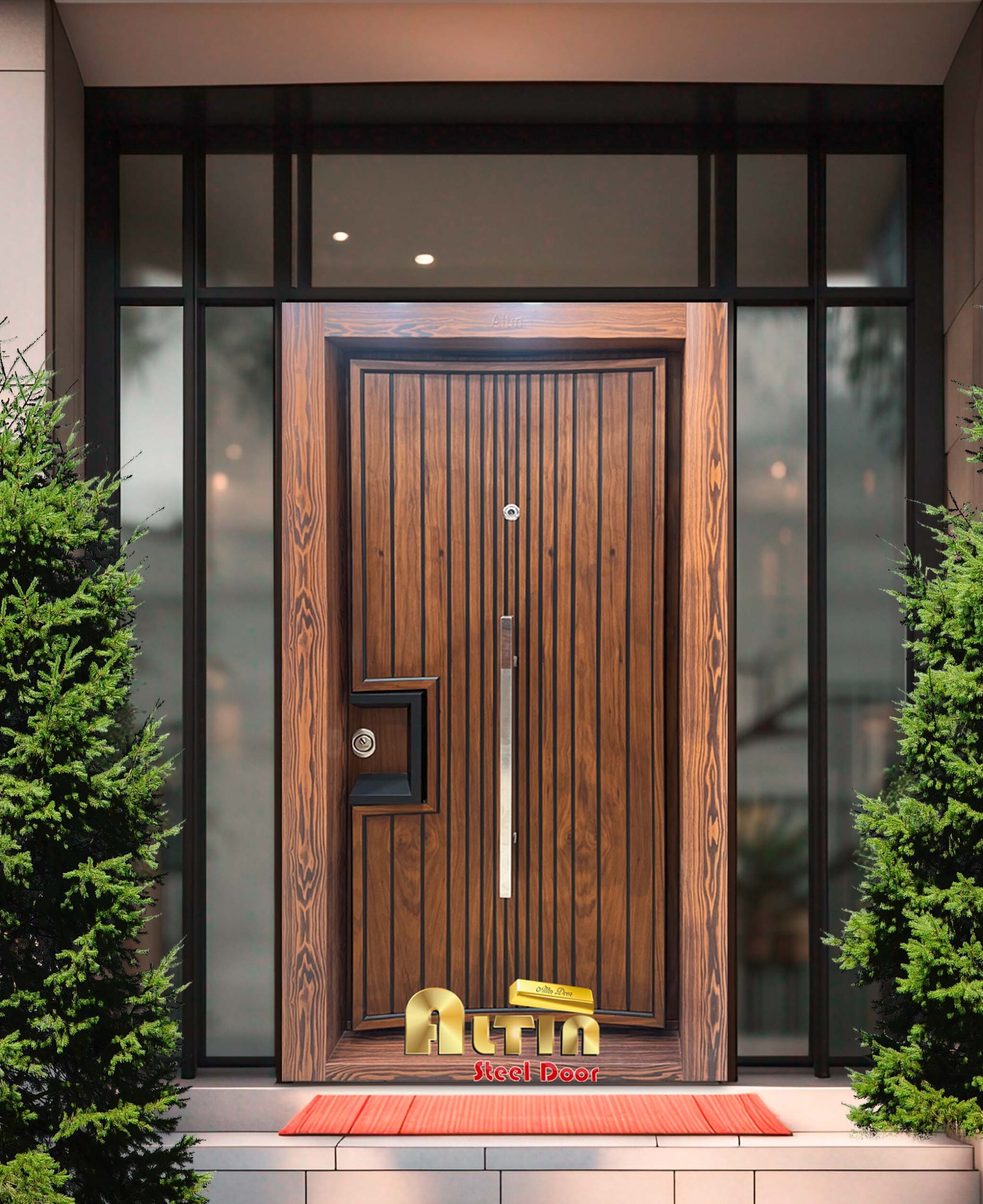 درب ضد سرقت برجسته گردویی آلتین مدل 1015